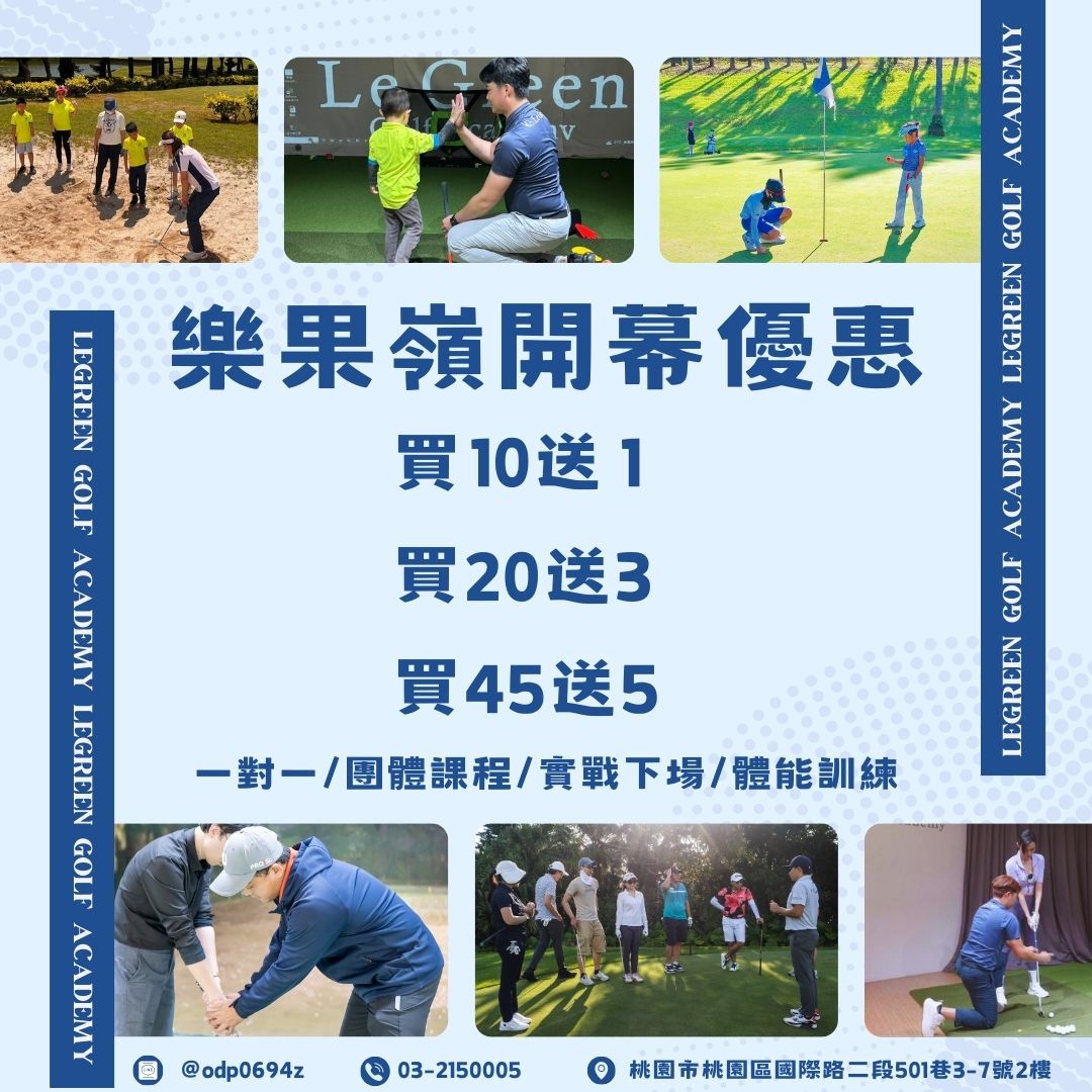 🎉 樂果嶺林口店開幕慶 🎉 🎁購課好禮送不停 1️⃣ 買10堂,贈1堂! 2️⃣ 買20堂,贈3堂! 3️⃣ 買45堂,贈5堂! 🔝 專業高球課程 桿數卡關?距離不夠? 樂果嶺專業教練將帶您突破極限,擊得更遠更準✨ 球技進步的同時,享受更豐富的優惠吧 10堂初階剛剛好、20堂進階實戰更有效、45堂一起跟親友打出好成績! 把握機會,讓我們一起在高爾夫的旅程中大放異彩⛳️ 趕快加入樂果嶺學院官方LINE了解更多活動資訊吧! LINE